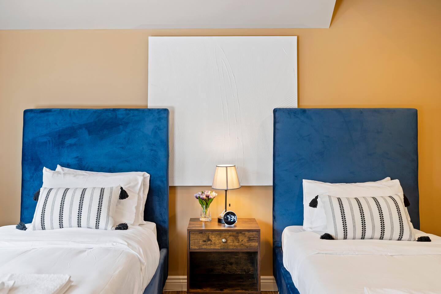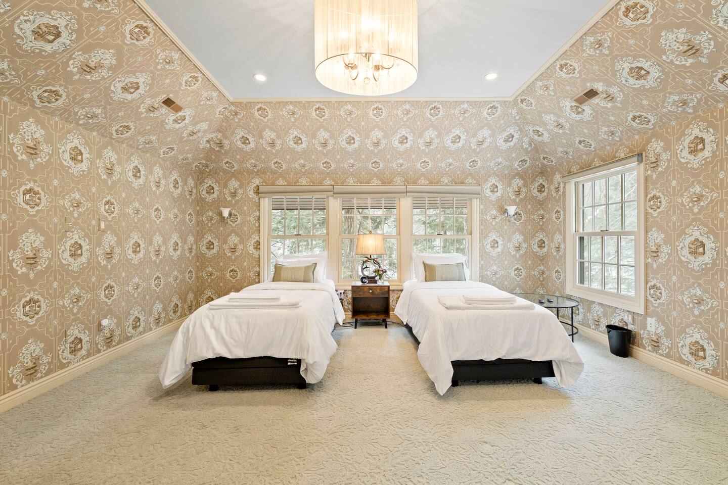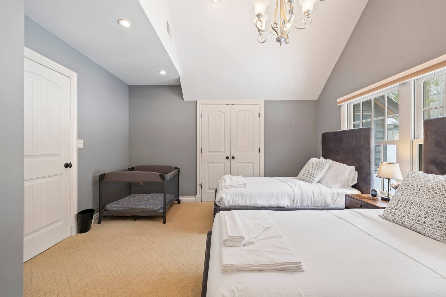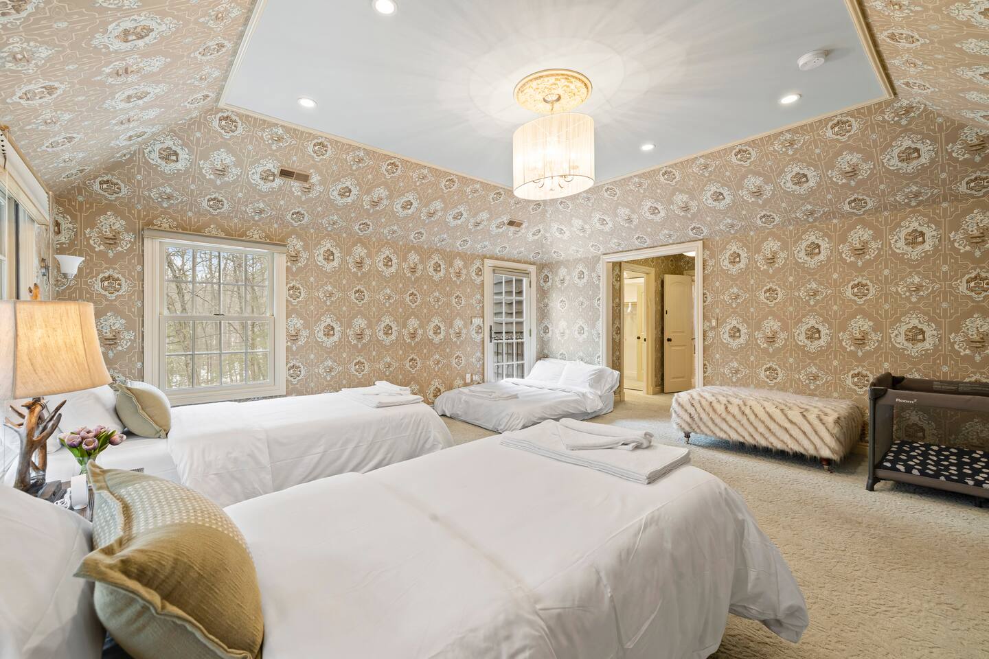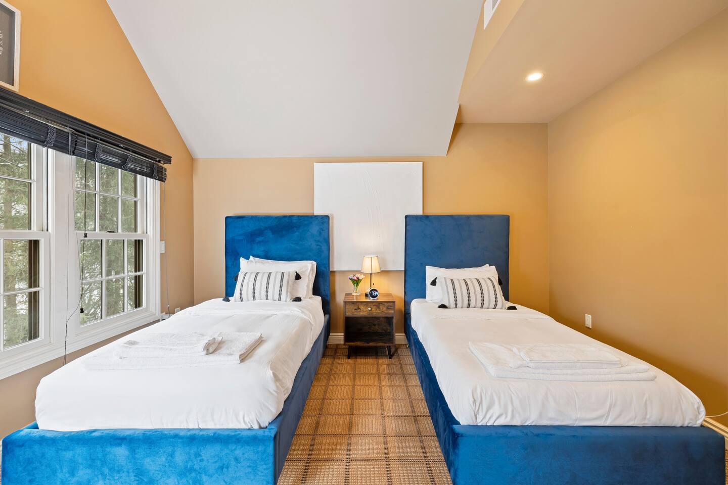 Welcome to "Aspen in Airmont", a unique lakeside cabin experience in Airmont, NY. Offering 9 beds across 4 rooms, including a lavish Master Suite with Tempurpedic mattresses, a Jacuzzi and separate shower. Our home is Highlighted by a 16-seat dining area, cozy indoor fireplace, and outdoor fire pit. Fits Small/Large Groups. Enjoy the year-round hot tub and in-ground trampoline. The perfect getaway with Friends/Family for vacation or Shabbos. (Located within an Eiruv, close to a local Shul)
